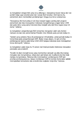 Ia mengatakan pengembangan BLK komunitas merupakan salah satu bentuk