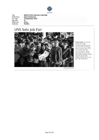 Title BERITA FOTO-UNS SOLO JOB FAIR Media Name Suara Pembaruan Pub. Date 26 September 2019 Page/URL 11 Media Type Koran Sentiment Positive Page 36 of 49.