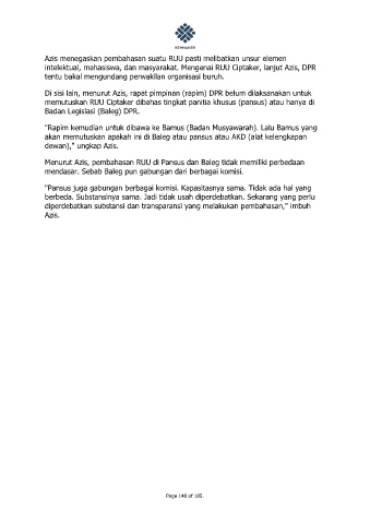 intelektual, mahasiswa, dan masyarakat. Mengenai RUU Ciptaker, lanjut Azis, DPR