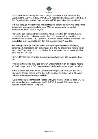 Menaker Ida juga mengapresiasi antusiasme para peserta seleksi CPNS yang sudah