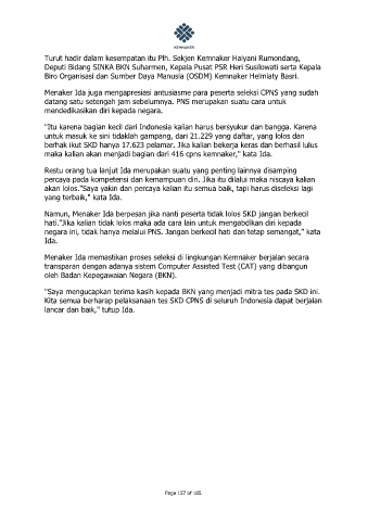 Menaker Ida juga mengapresiasi antusiasme para peserta seleksi CPNS yang sudah