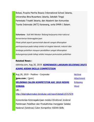 elshinta.com, Aug 20, 2019: KEMENAKER LAKUKAN SELEKNAS IKUTI