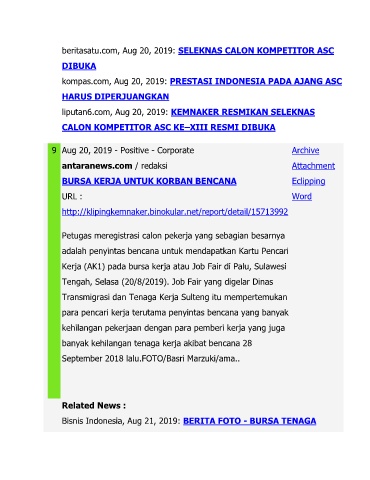 liputan6.com, Aug 20, 2019: KEMNAKER RESMIKAN SELEKNAS