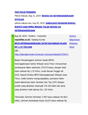 Pikiran Rakyat, Aug 21, 2019: REVISI UU KETENAGAKERJAAN