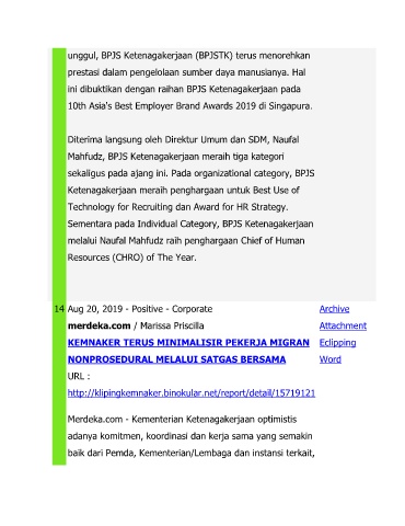 unggul, BPJS Ketenagakerjaan (BPJSTK) terus menorehkan