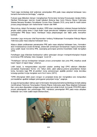 "Kami juga membahas draf pedoman penempatan PMI pada masa adaptasi kebiasaan baru