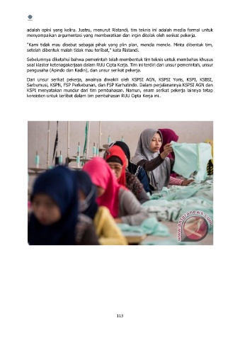 soal klaster ketenagakerjaan dalam RUU Cipta Kerja. Tim ini terdiri dari unsur pemerintah, unsur