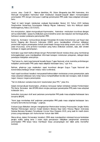kebijakan penempatan PMI pada masa adaptasi kebiasaan baru," ujar Aris.