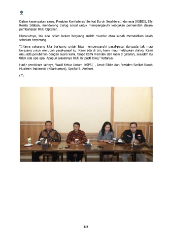 Dalam kesempatan sama, Presiden Konfederasi Serikat Buruh Sejahtera Indonesia (KSBSI), Elly