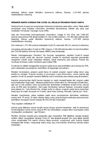 para pekerja itu," kata Menteri Ida. Hingga berita ini dibuat, program padat karya kebersihan