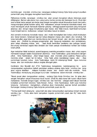mahasiswa menolak dengan tegas omnibus law dan meminta sebagai wakil rakyat menolak