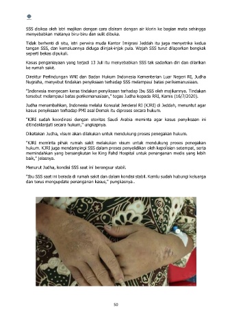 hukum. KJRI juga mendampingi SSS dalam proses penyelidikan oleh kepolisian setempat, serta