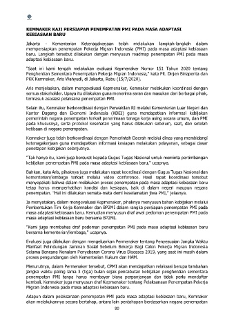 kebijakan penempatan PMI pada masa adaptasi kebiasaan baru," ucapnya.