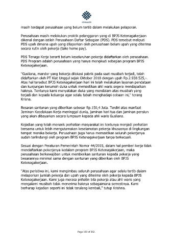 Perusahaan masih melakukan praktik pelanggaran yang di BPJS Ketenagakerjaan