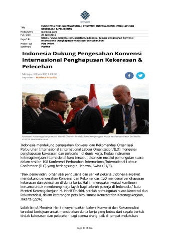 Lebih lanjut Menaker Hanif menyampaikan bahwa Konvensi dan Rekomendasi