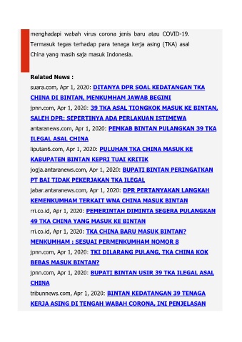 jpnn.com, Apr 1, 2020: 39 TKA ASAL TIONGKOK MASUK KE BINTAN,