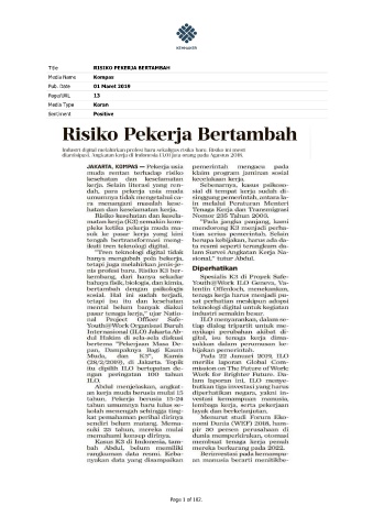 Title RISIKO PEKERJA BERTAMBAH Media Name Kompas Pub. Date 01 Maret 2019 Page/URL 13 Media Type Koran Sentiment Positive Page 1 of 102.