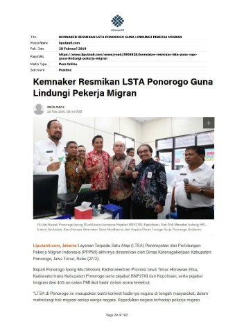 Title KEMNAKER RESMIKAN LSTA PONOROGO GUNA LINDUNGI PEKERJA MIGRAN