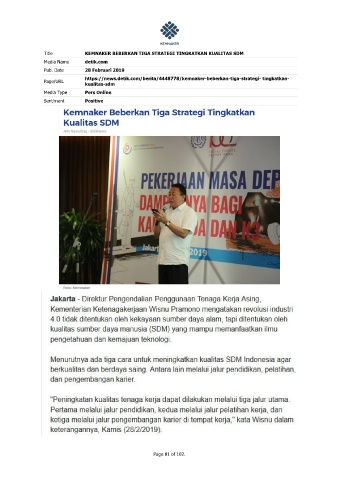 Title KEMNAKER BEBERKAN TIGA STRATEGI TINGKATKAN KUALITAS SDM