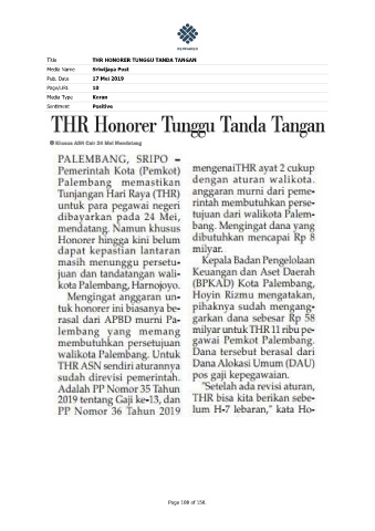 Title THR HONORER TUNGGU TANDA TANGAN Media Name Sriwijaya Post Pub. Date 17 Mei 2019 Page/URL 10 Media Type Koran Sentiment Positive Page 108 of 150.