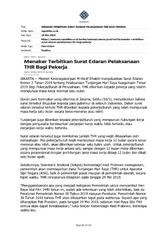 Title MENAKER TERBITKAN SURAT EDARAN PELAKSANAAN THR BAGI PEKERJA
