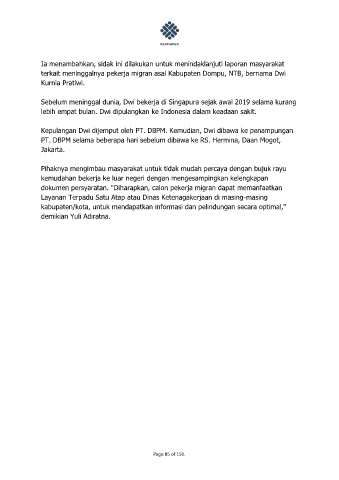terkait meninggalnya pekerja migran asal Kabupaten Dompu, NTB, bernama Dwi