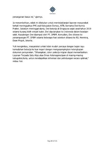 terkait meninggalnya PMI asal Kabupaten Dompu, NTB, bernama Dwi Kurnia
