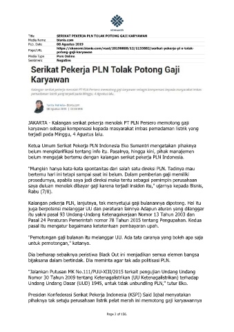 Title SERIKAT PEKERJA PLN TOLAK POTONG GAJI KARYAWAN