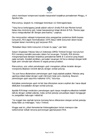 untuk membayar kompensasi kepada masyarakat terjadinya pemadamam Minggu, 4