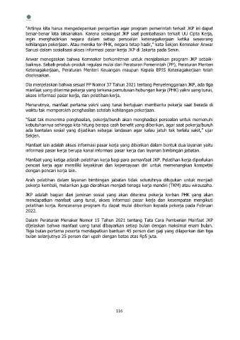 Dia menjelaskan bahwa sesuai PP Nomor 37 Tahun 2021 tentang Penyelenggaraan JKP, ada tiga