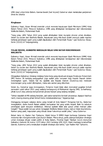 Batam Tahun 2022. Menurut Gubernur, UMK yang ditetapkan berdasarkan dari rekomendasi