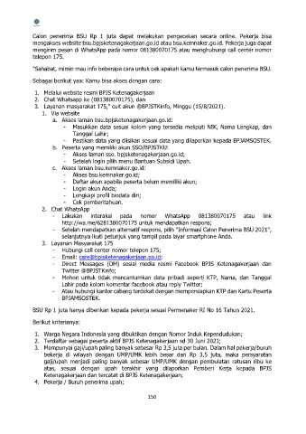 mengakses website bsu.bpjsketenagakerjaan.go.id atau bsu.kemnaker.go.id. Pekerja juga dapat