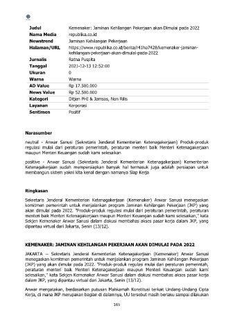 Page 166 - E-KLIPING KETENAGAKERJAAN 14 DESEMBER 2021