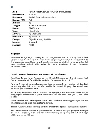 Judul Pemkot Jakbar Gelar Job Fair Diikuti 40 Perusahaan