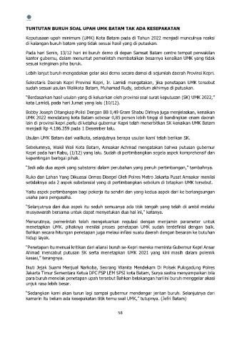Keputusaan upah minimum (UMK) Kota Batam pada di Tahun 2022 menjadi munculnya reaksi