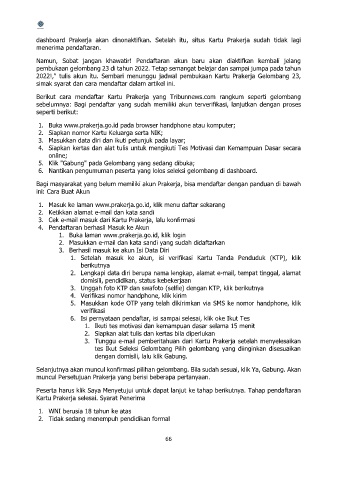 dashboard Prakerja akan dinonaktifkan. Setelah itu, situs Kartu Prakerja sudah tidak lagi