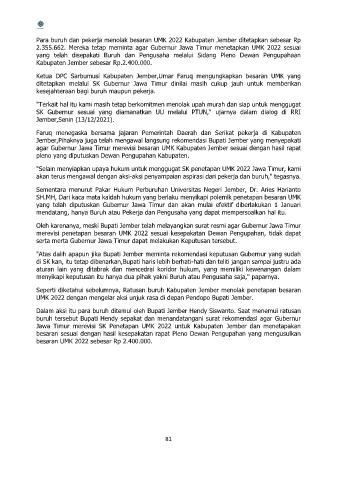 2.355.662. Mereka tetap meminta agar Gubernur Jawa Timur menetapkan UMK 2022 sesuai