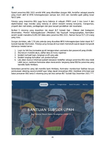 Syarat penerima BSU 2021 sendiri WNI yang dibuktikan dengan NIK, terdaftar sebagai peserta