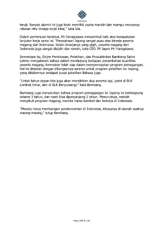 Bambang juga menuturkan bahwa program pemagangan ke Jepang ini berlangsung