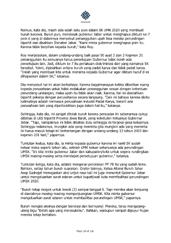 buruh kecewa. Buruh pun, mendesak gubernur Jabar untuk menghapus diktum ke-7