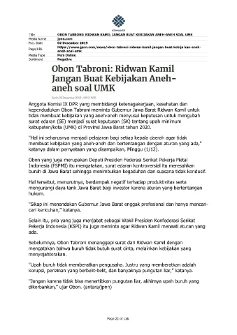 Title OBON TABRONI: RIDWAN KAMIL JANGAN BUAT KEBIJAKAN ANEH-ANEH SOAL UMK