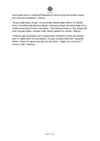 Kamil memastikan pula jika perundingan antara perusahaan dan buruh tetap harus