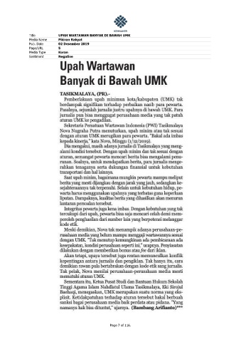 Title UPAH WARTAWAN BANYAK DI BAWAH UMK Media Name Pikiran Rakyat Pub. Date 02 Desember 2019 Page/URL 5 Media Type Koran Sentiment Negative Page 7 of 116.