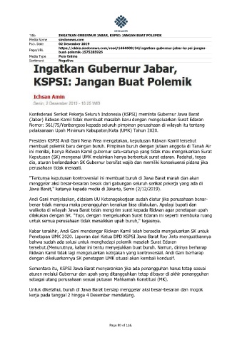 Title INGATKAN GUBERNUR JABAR, KSPSI: JANGAN BUAT POLEMIK