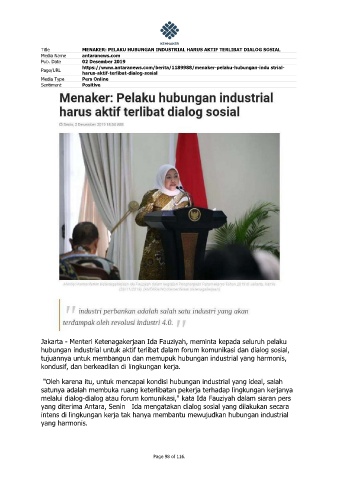 Title MENAKER: PELAKU HUBUNGAN INDUSTRIAL HARUS AKTIF TERLIBAT DIALOG SOSIAL