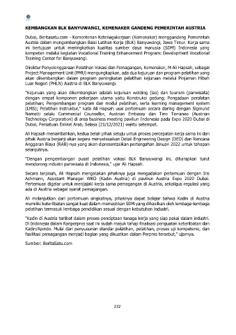 Austria dalam mengembangkan Balai Latihan Kerja (BLK) Banyuwangi, Jawa Timur. Kerja sama