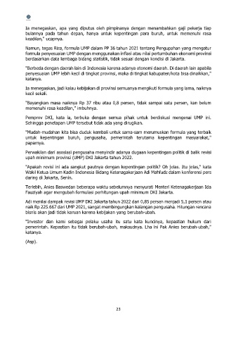 Adi menilai dampak revisi UMP DKI Jakarta tahun 2022 dari 0,85 persen menjadi 5,1 persen atau