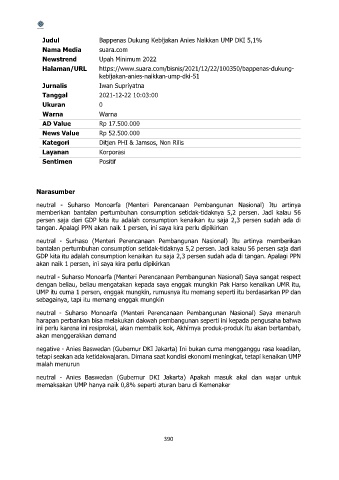 Judul Bappenas Dukung Kebijakan Anies Naikkan UMP DKI 5,1%