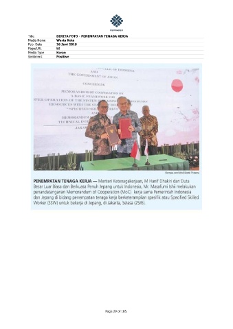 Title BERITA FOTO - PENEMPATAN TENAGA KERJA Media Name Warta Kota Pub. Date 26 Juni 2019 Page/URL bI Media Type Koran Sentiment Positive Page 29 of 185.