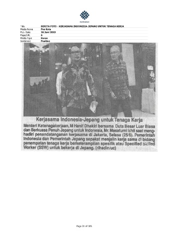 Title BERITA FOTO - KERJASAMA INDONESIA-JEPANG UNTUK TENAGA KERJA Media Name Pos Kota Pub. Date 26 Juni 2019 Page/URL 6 Media Type Koran Sentiment Positive Page 31 of 185.